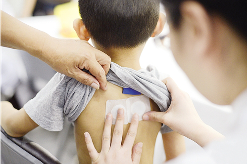 四、贴敷期间,有皮肤过敏者(贴敷边缘有红色丘疹者),可用抗过敏药涂擦。如局部有热感或微痒属正常现象。如出现皮肤破损严重,需来医院就诊。